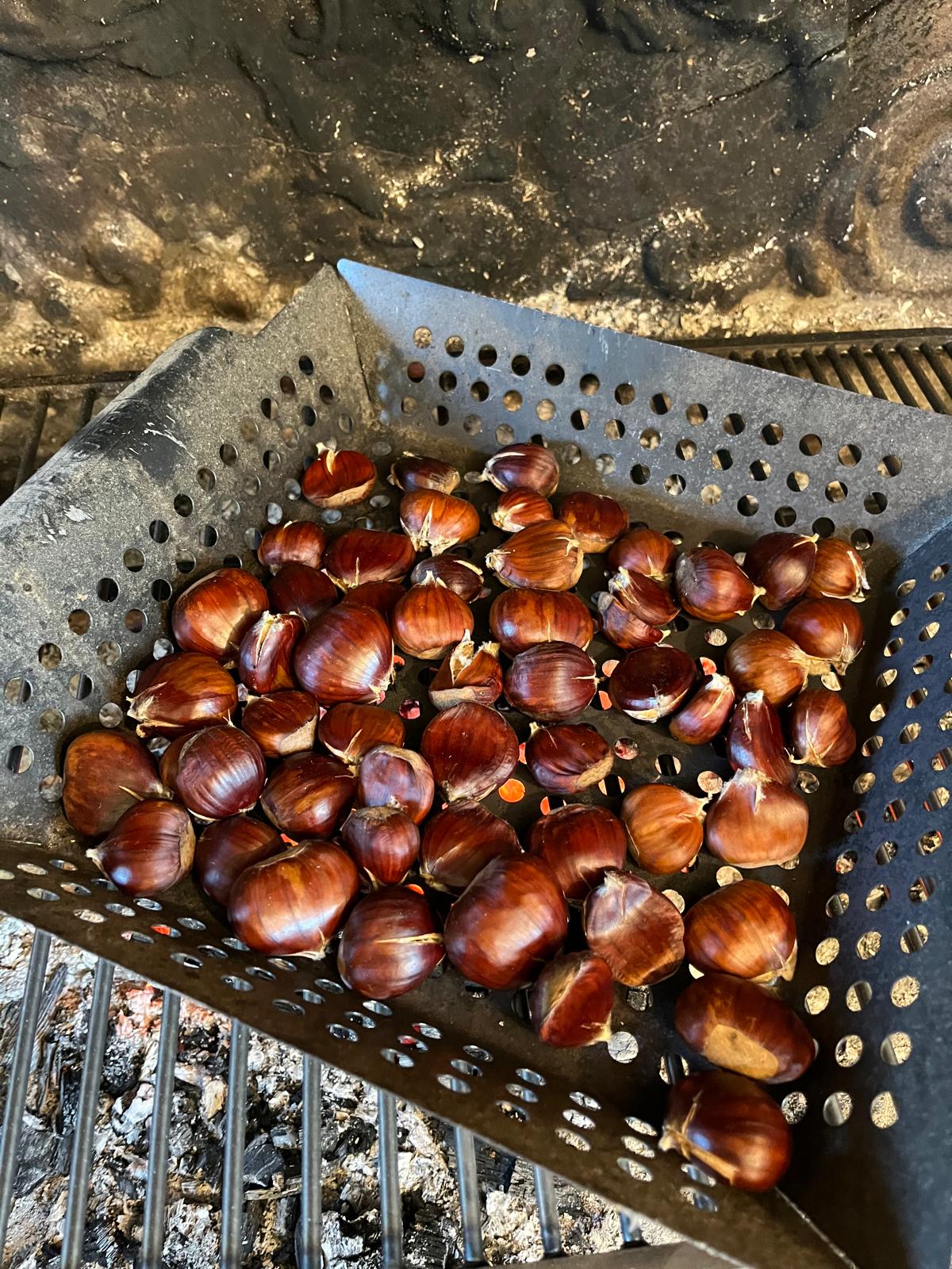 Châtaignes ramassées lors d'une balade en trottinette cuites au feu de bois à la cheminée