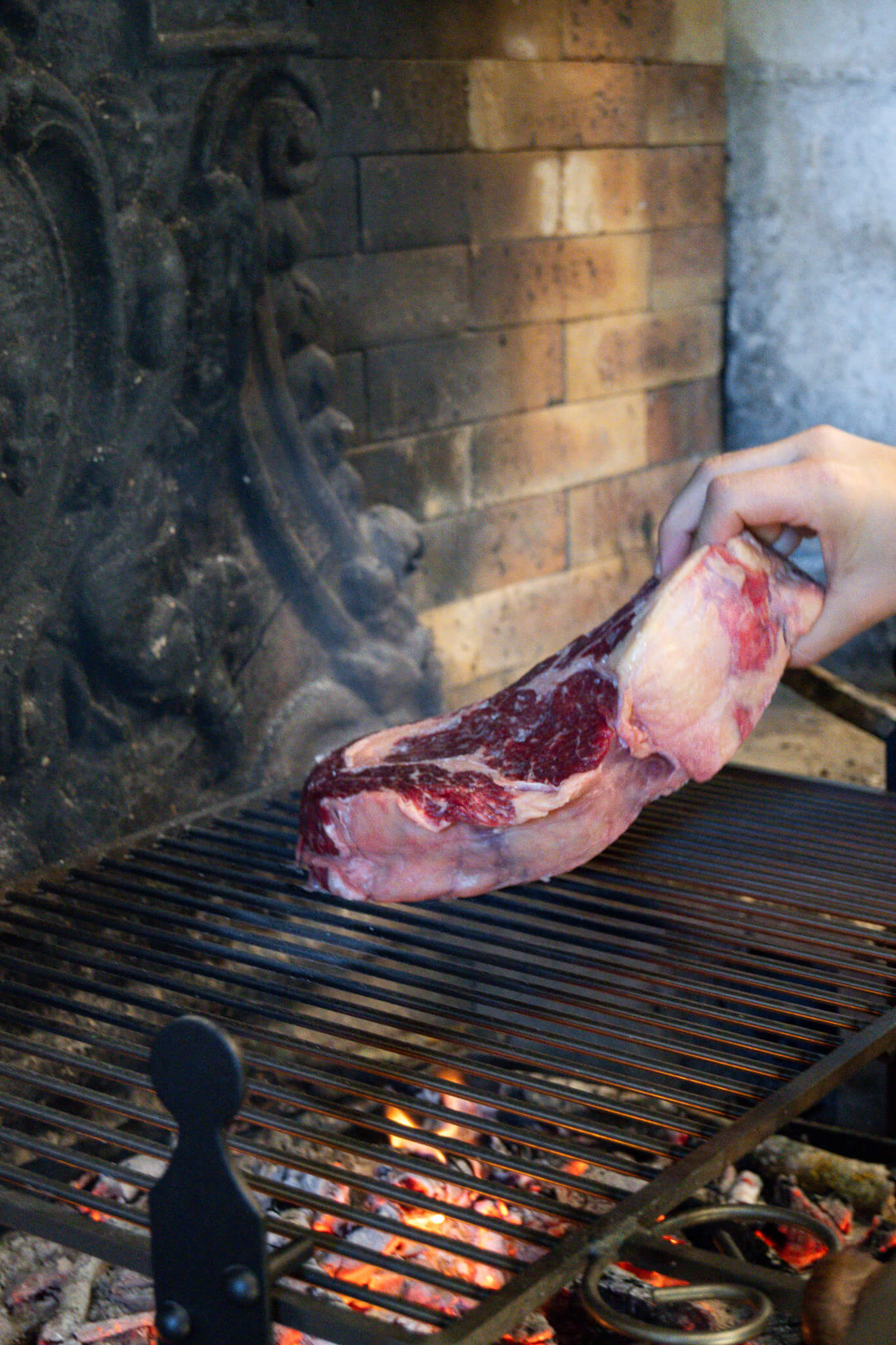 Côte de bœuf cuite au feu de bois dans la grande cheminée du gîte